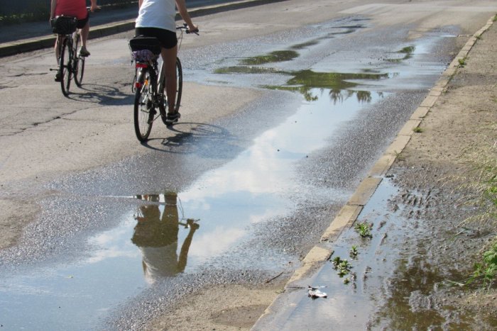 Hneď na to si môžete všimnúť záhadu číslo dva. Na ceste je často z nevysvetliteľných príčin mokro, hoci praží slnko a je leto. Čosi cez prasknuté múry už roky rokúce vyteká a hromadí sa to na rozbitej ceste. Výtlk tomu dodáva punc originality; ak tam niekto treskne pneumatikou, okoloidúceho môže parádne oprskať. Aby to teda nebolo len také obyčajné bez efektu.