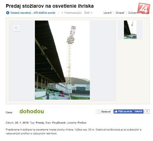 Galéria FOTO: Vedeli ste? Cez inzeráty predávajú časti prešovského futbalového štadióna