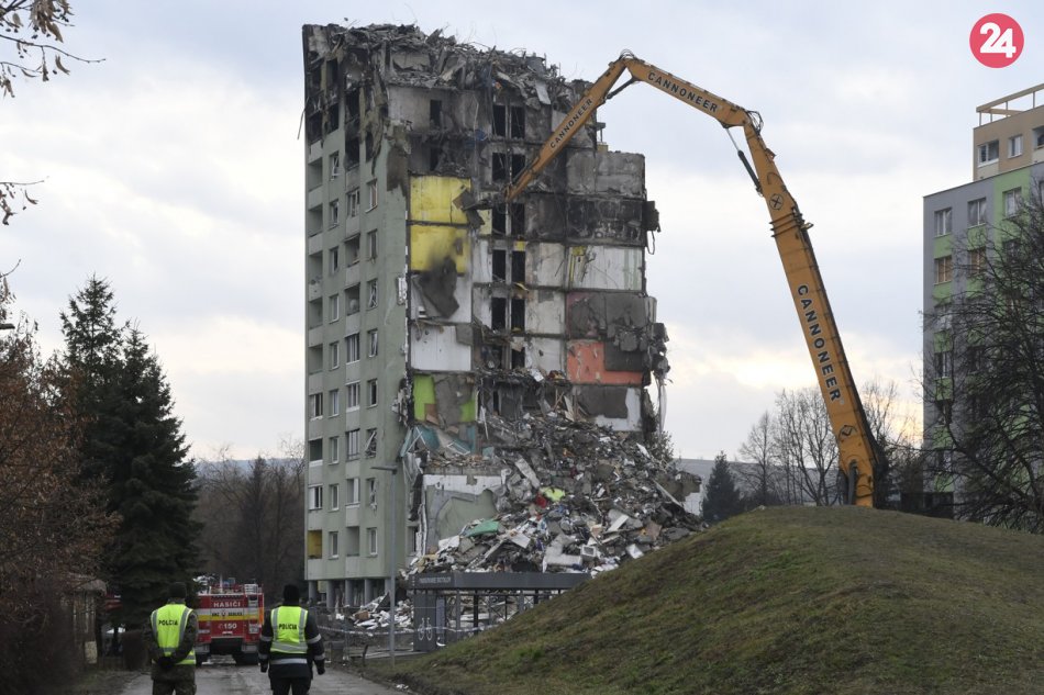 Galéria k článku Likvidačné práce už chcú ukončiť: Bytovku v Prešove po výbuchu zbúrajú celú, VIDEO