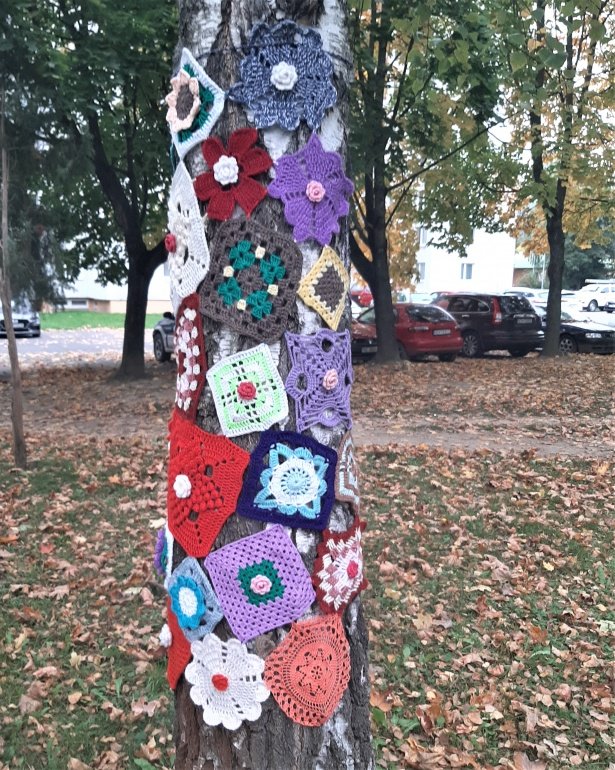 Galéria k článku Seniorky v Humennom majú šikovné ruky. Stromy skrášlili háčkovanými dečkami, FOTO