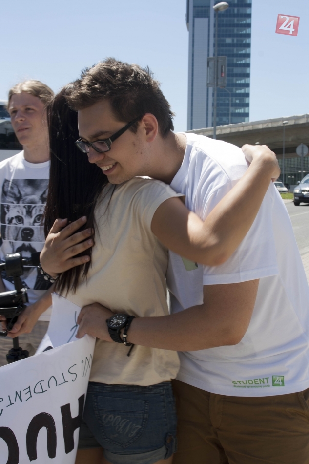 Galéria k článku Nevídaný úkaz v uliciach: Tínedžeri objímali chodcov!