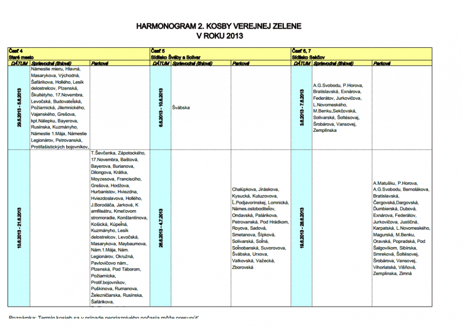 Galéria k článku HARMONOGRAM: V meste začala 2. časť kosby. Úpravy zelene by mali ukončiť v júli
