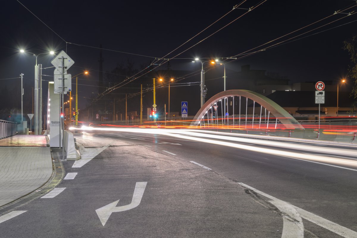 Galéria k článku Župa si ho nazvala po svojom: Ako vyzerá nový most v Prešove po zotmení? FOTO