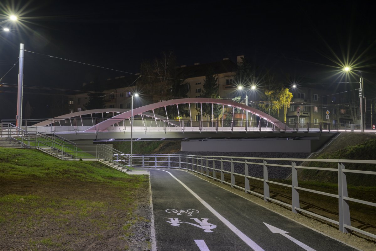 Galéria k článku Župa si ho nazvala po svojom: Ako vyzerá nový most v Prešove po zotmení? FOTO