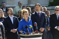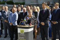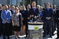 Objektívom: Tlačovka OĽaNO v Prešove pred úradom PSK