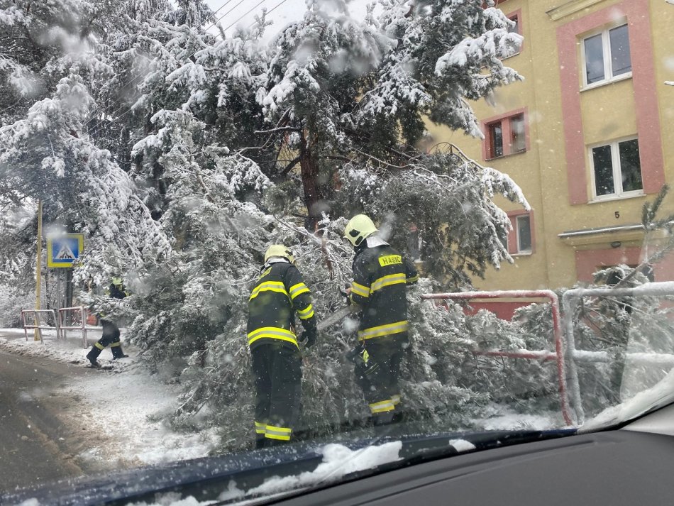 Galéria k článku Husté sneženie v Prešove: Mechanizmy sú v akcii, na Smrekovej a Dubovej spadli stromy!