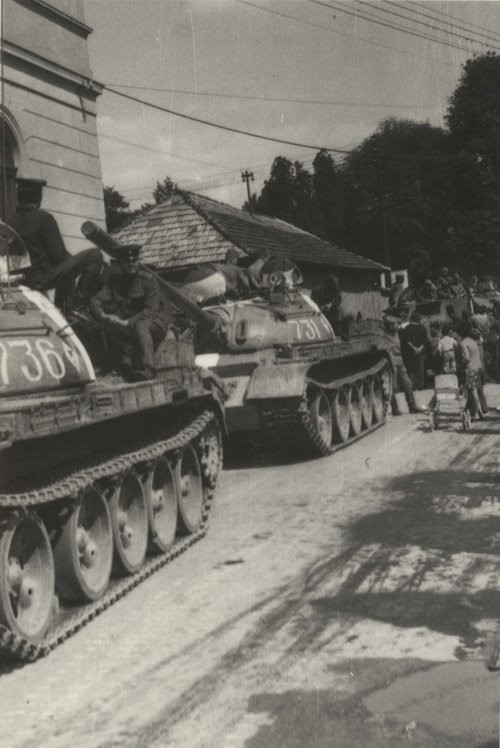 Detail na inváznu kolónu tankov v prešovských uliciach (ÚPN)