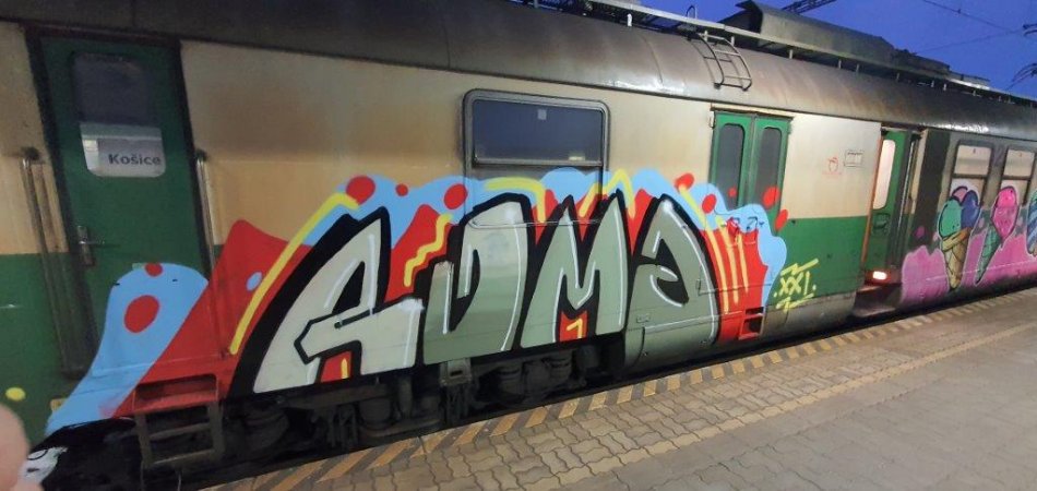 Galéria k článku Vlak v Lipanoch dostal nevyžiadanú fasádu: Páchateľovi za to hrozí väzenie