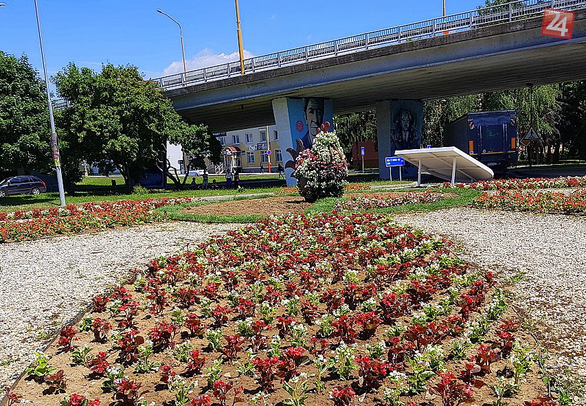 Galéria k článku FOTO: Ďalší kruháč v Humennom má ozdobnú atrakciu. Z fontány presťahovali sliepku