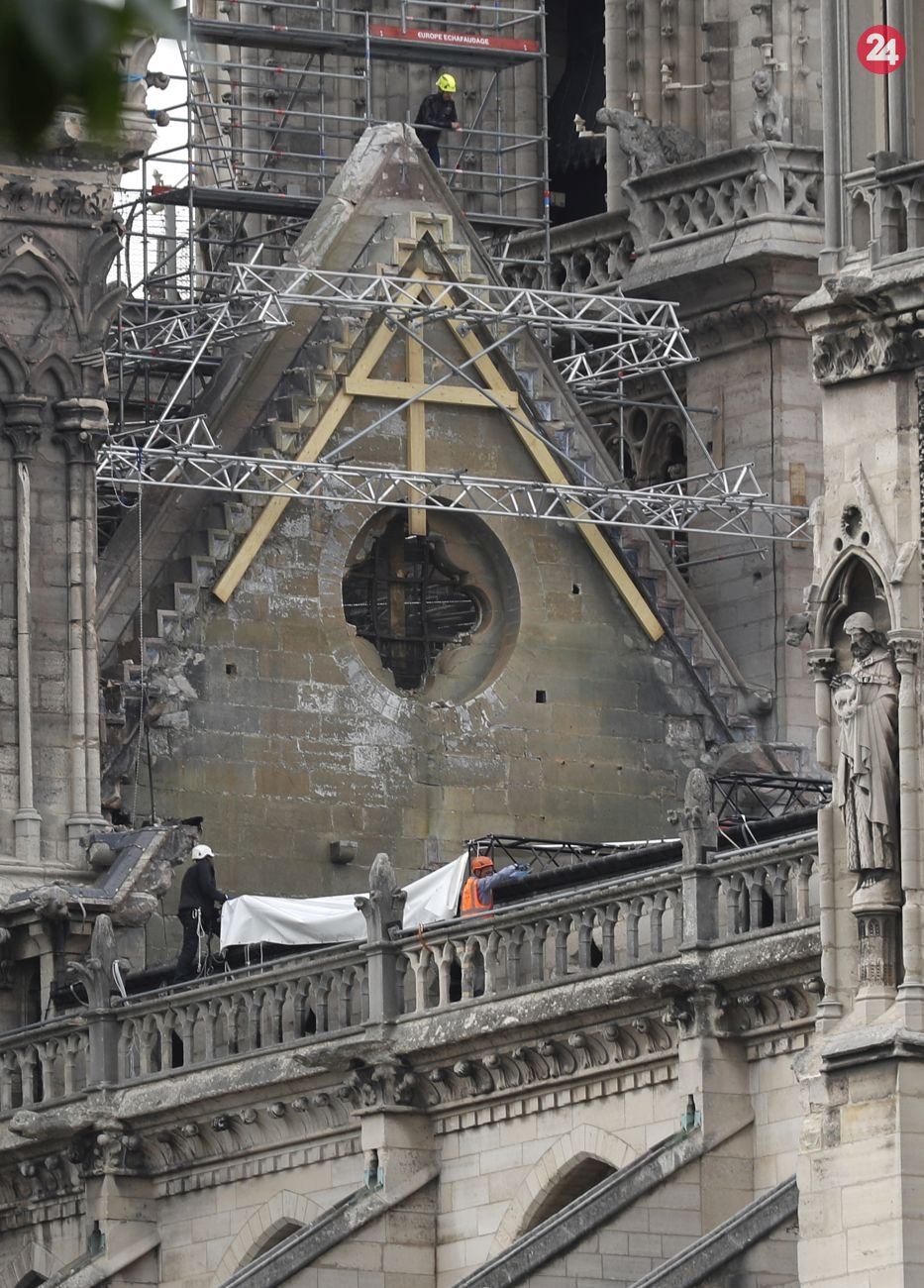 Galéria k článku Notre-Dame sa snažia ochrániť pred dažďom: Pozrite si aktuálne fotografie
