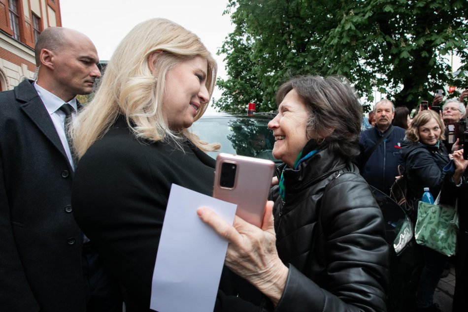 Galéria k článku Krásne gesto prezidentky: V Prešove po príchode príkladne odprevadila dôchodkyňu, VIDEO