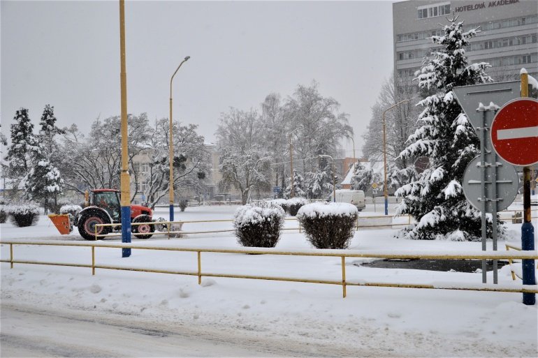 Galéria k článku Humenné pod snehom. Vietor a sneženie komplikujú dopravu, FOTO