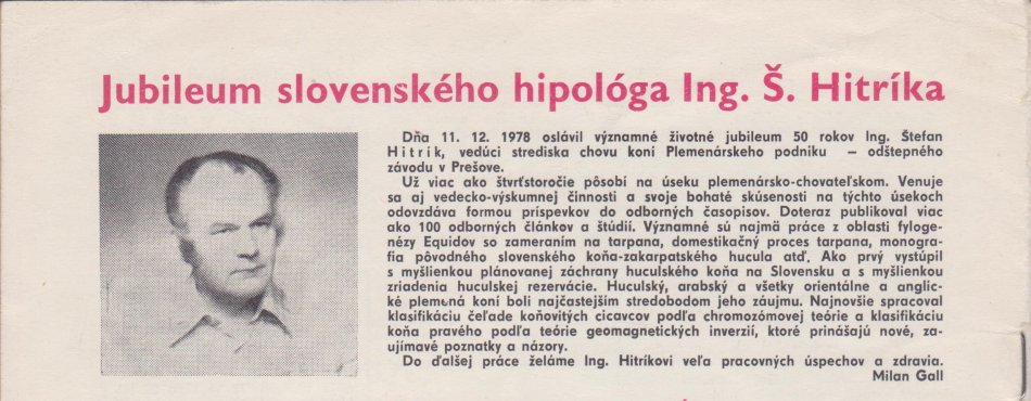 Galéria Plemenár a chovateľ koní v Prešove Štefan Hitrík
