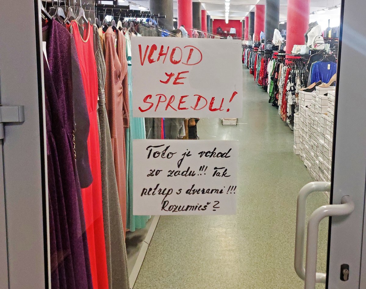 Galéria k článku Toto je vchod zozadu, ROZUMIEŠ?! Prešovský obchoďák baví zákazníkov VTIPNÝM oznamom