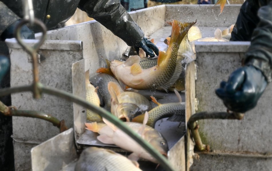 Galéria k článku Začal sa výlov vianočného kapra: Tradície ustupujú, ceny sa zvyšujú, VIDEO a FOTO