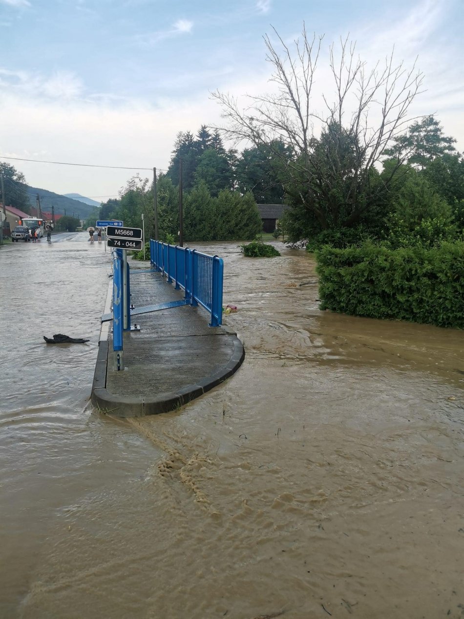 Galéria k článku V Ubli voda zaplavila cestu: V obci si nepamätajú, aby sa potok vylial na takom mieste