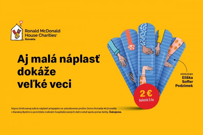 V reštauráciách McDonald's po celom Slovensku sa začína tradičná charitatívna kampaň, v rámci ktorej si zákazníci môžu zakúpiť balíček dizajnových náplastí a podporiť tak neziskovú organizáciu Ronald McDonald House Charities. Výťažok z predaja pomôže s vybudovaním prvého Domu Ronalda McDonalda v Banskej Bystrici, ktorý poskytne zázemie rodinám detí hospitalizovaných na dlhší čas.