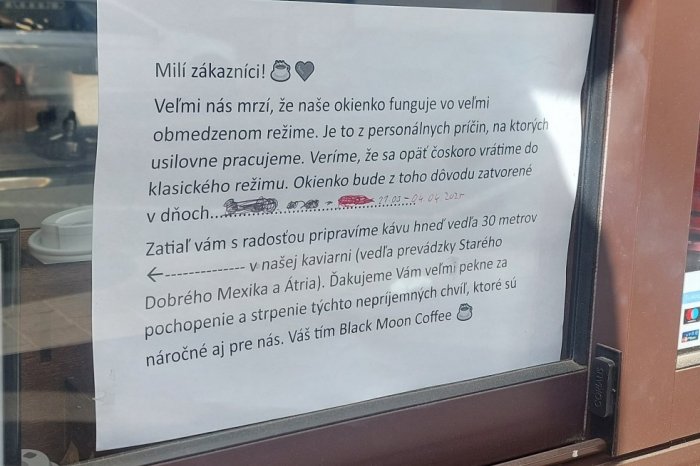 Prešovská kaviareň ďalej uviedla, že okienko bude zatvorené, dátumy sa však naďalej posúvajú a pracovnú pozíciu baristky zatiaľ nikto nový podľa všetkého neobsadil.