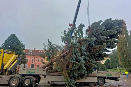 Sledovali sme jeho osadenie: V centre Prešova už stojí vianočný stromček, VIDEO